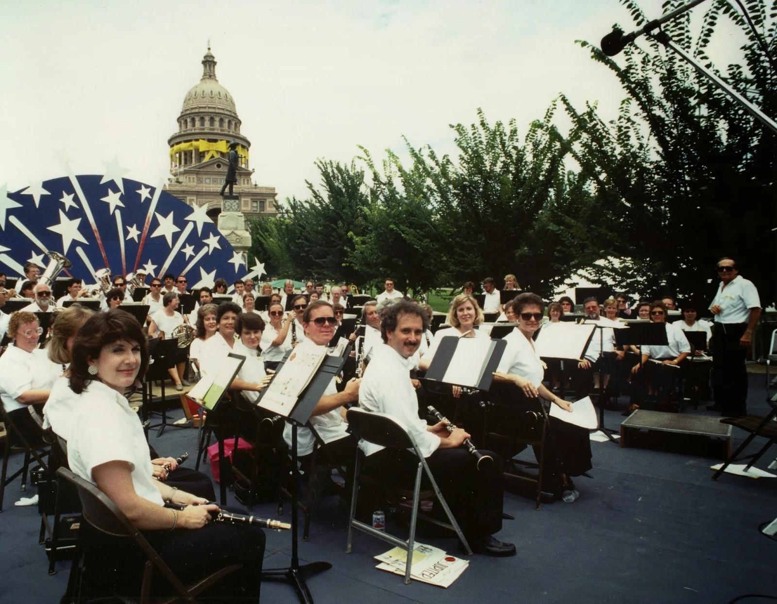 After the 1991 war “Desert Storm” in Kuwait and Iraq, Texas Governor Ann Richards presided over the state’s welcome-home of the victorious Texas troops. The Austin Symphonic Band, which was selected to provide music for the event, was seated on a special stage on the grounds of the Texas State Capitol with the yellow-ribbon-wrapped capitol dome in the background. The band and the Austin Choral Union accompanied soprano Barbara Conrad as she sang The Battle Hymn of the Republic.